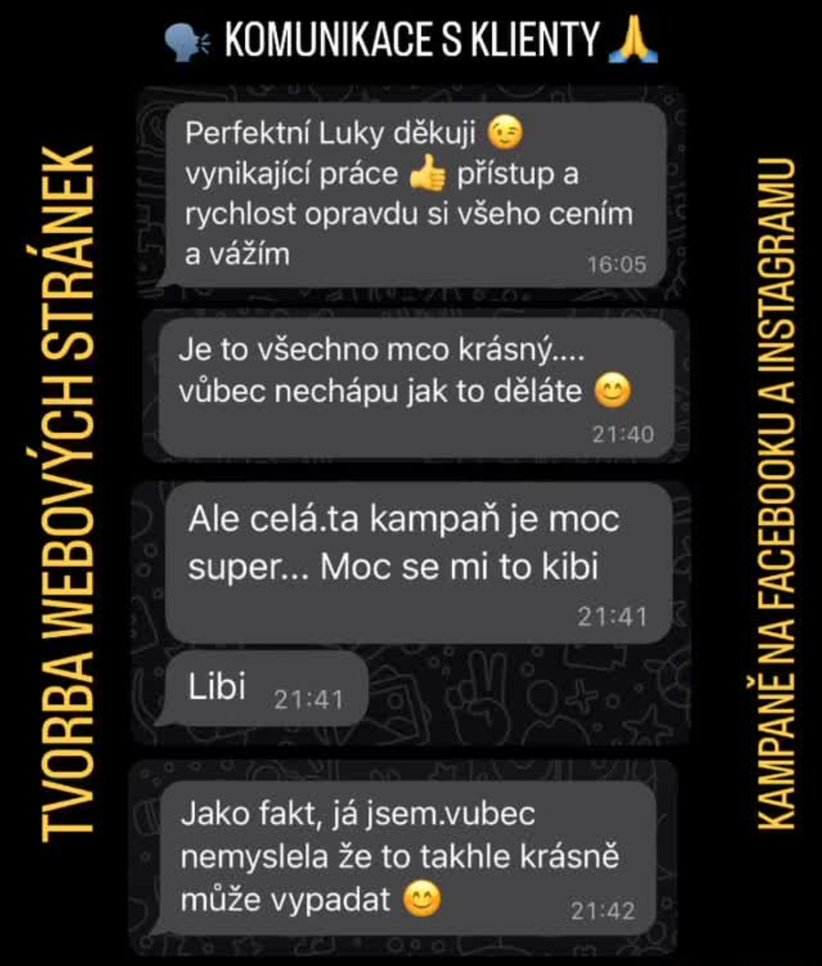 Jsem tu, abych pomohl propojit vaše podnikání s digitálním světem. Věnuji se převážně tvorbě kampaní na sociálních sítích Facebook a Instagram a také se specializuji na tvorbu moderních webových stránek na míru. Moje kariéra zahrnuje několik klíčových pozic, kde jsem měl možnost pracovat na úspěšných projektech a inovativních řešeních. Jsem nadšeným profesionálem, který neustále hledá nové a efektivní způsoby, jak dosáhnout nejlepších výsledků pro mé klienty.