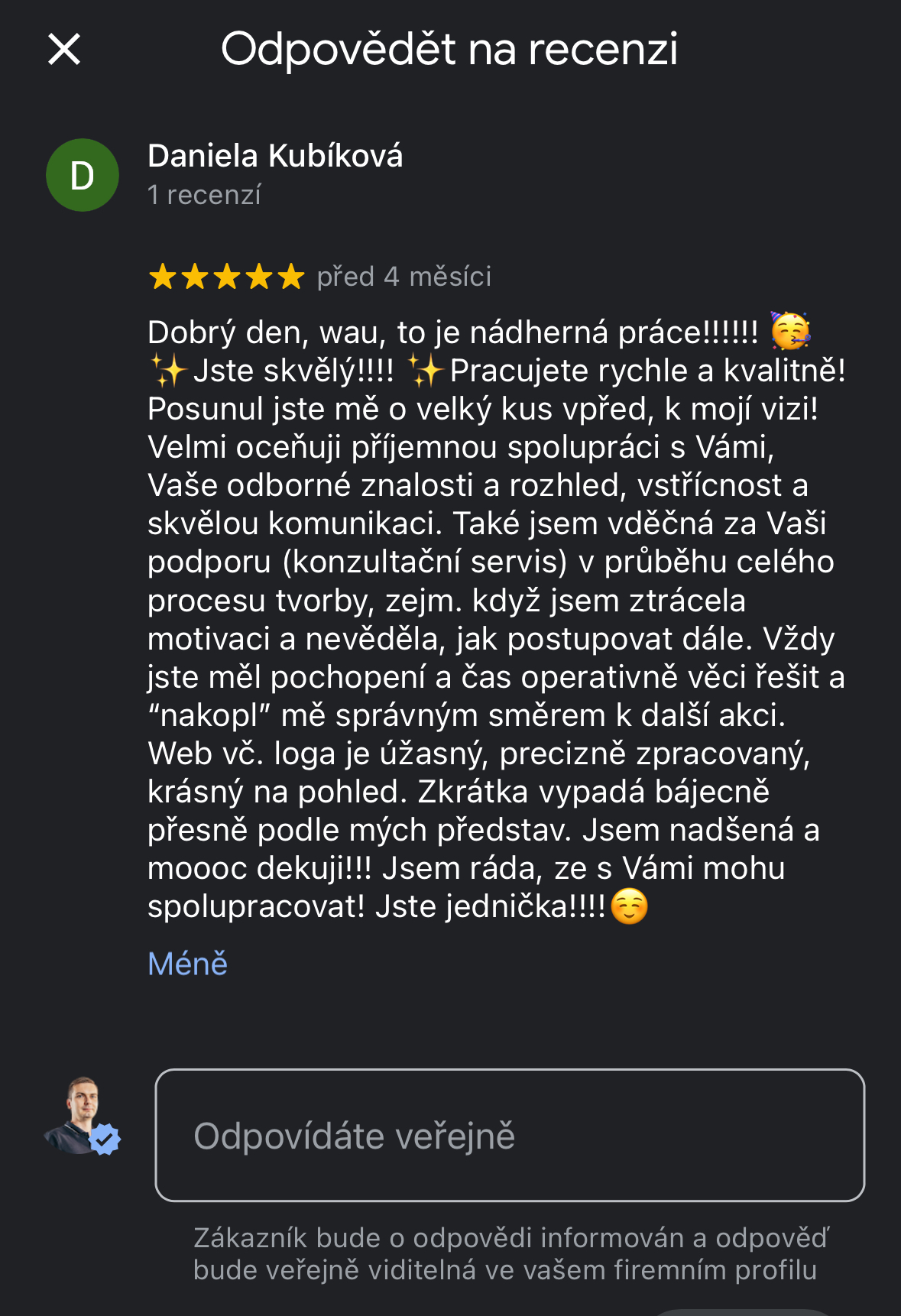 Jsem rád že jsem využil služeb pana Řezníčka. Pomohl nám jak s webovými stránkami tak s online marketingem. Vše na čem jsme se dohodli bylo splněno nad moje očekávání! Děkuji za naší firmu KovoKuba